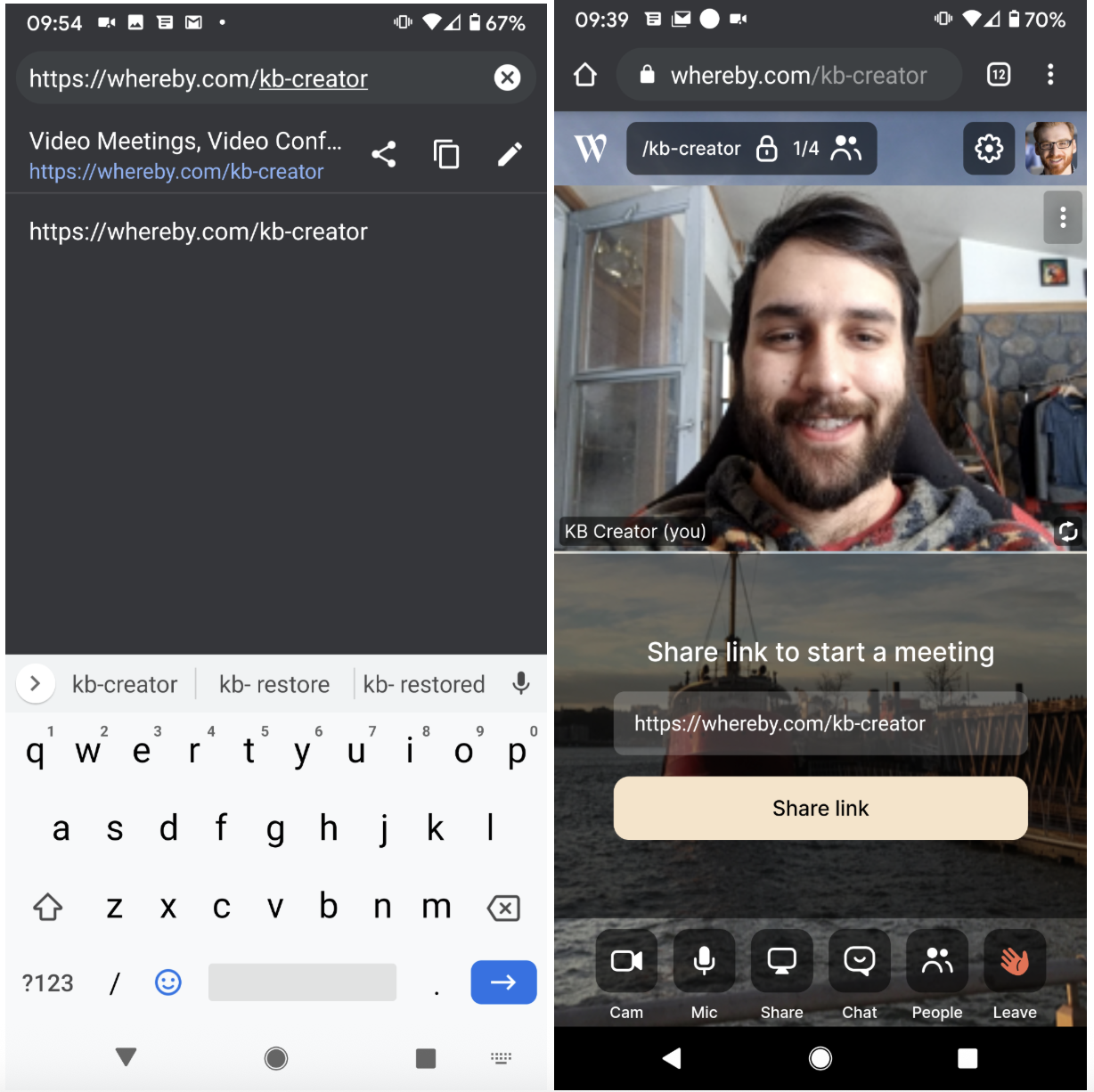 On Android, joining a room is as simple as opening up Chrome on your phone and typing in the room URL. This will take you directly into the room so you can start your meeting!