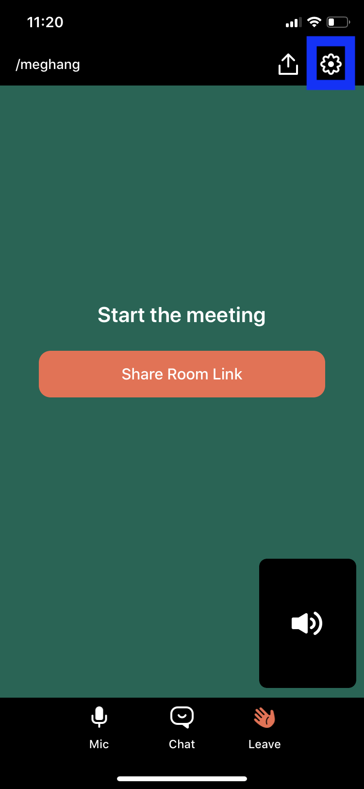 If you're joining another person's room, you can enable Audio Only mode after you've connected to the meeting. After joining the room, click on the gear icon in the top right-hand corner of the screen, and choose audio only from the sidebar list.