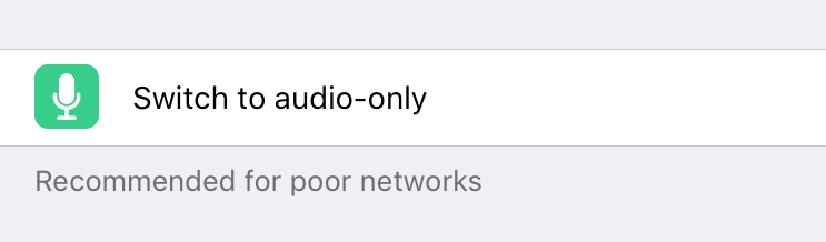 If you have a weak network connection, or if you just want to cut down on your data usage, Audio Only mode is a great tool to have! With this feature you won't receive or send any video data, and you'll only receive the audio data. There are two ways that you can enable Audio Only Mode.