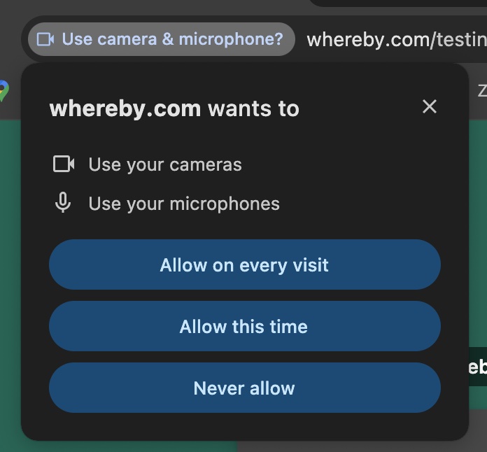 If you've already given Whereby permission to access your cam and mic, you'll skip steps 4 and 5