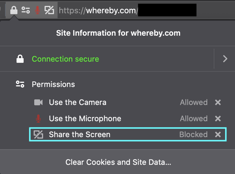 If you initially clicked Don't Allow, Firefox won't show this prompt again when you try to share your screen and won't show any sharing options. In this case, you'll need to manually reset the permissions for screen access by doing the following: