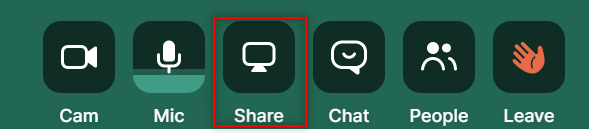 To start, hover over the Share button in the bottom toolbar, then select Share screen.