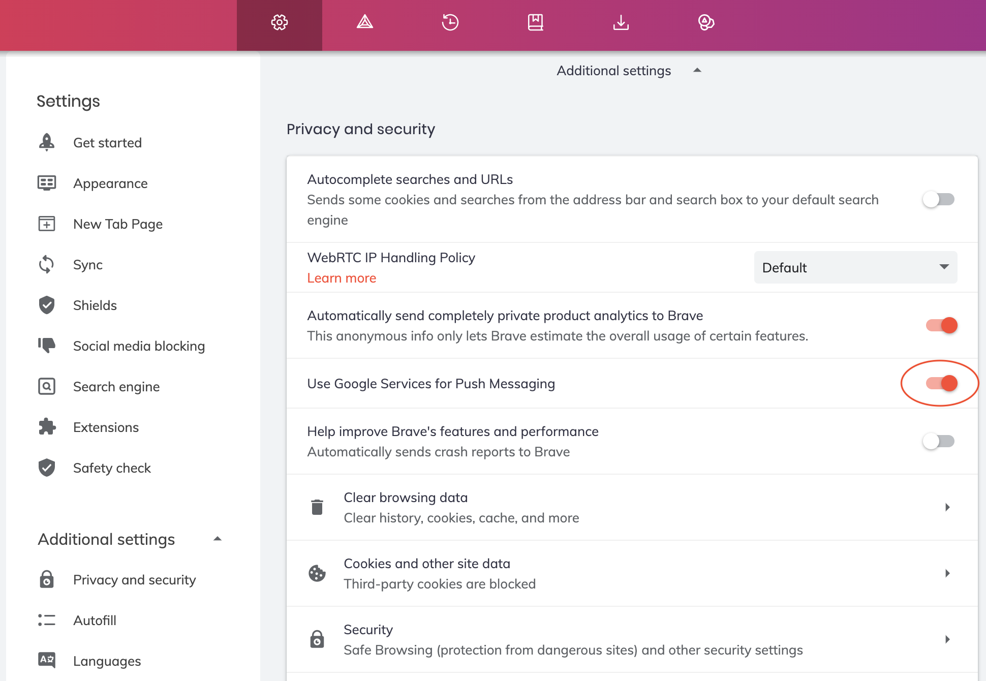 Navigate to your the privacy section of your browser's settings page (you can enter brave://settings/privacy in your URL bar).