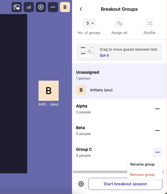 When you're ready, select "Start breakout session".