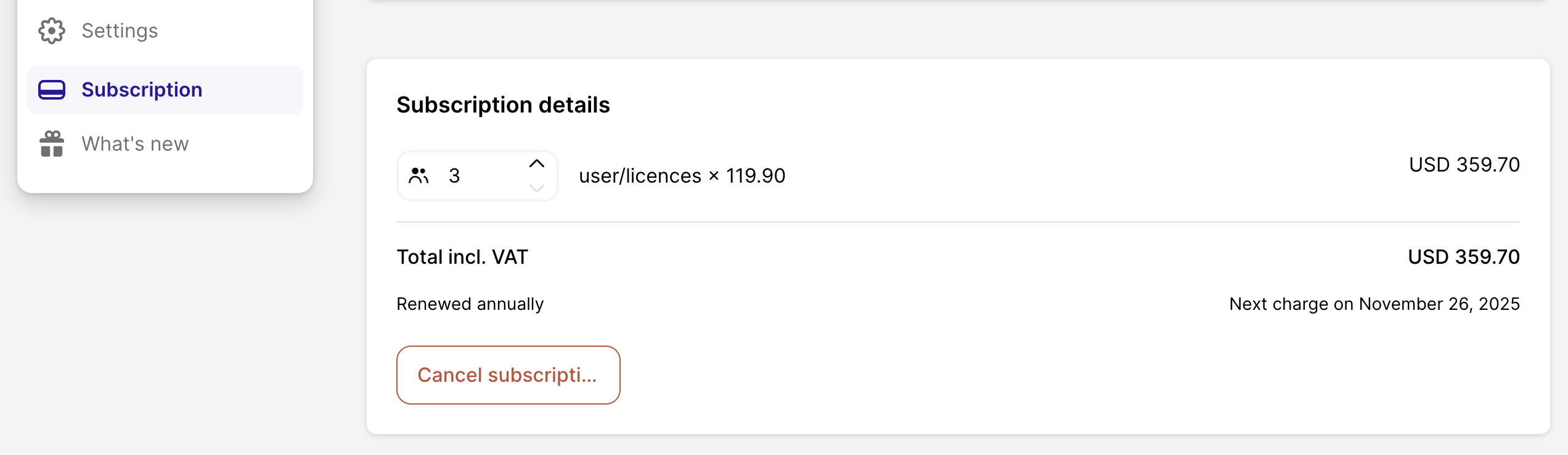 Click the Cancel subscription button at the bottom of your subscription details.