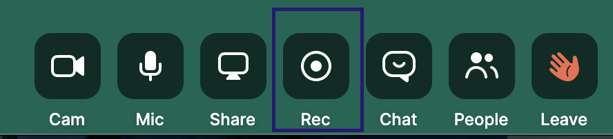 Go to the room of your choice and start a recording in your room at any time by clicking on the Recording button in the bottom toolbar.