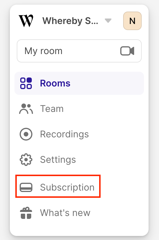These plans would include a subdomain in the URL, for example "https:// subdomain.whereby.com/". They cost $9.99 per license/monthly. Follow these steps to subscribe to the current plan: