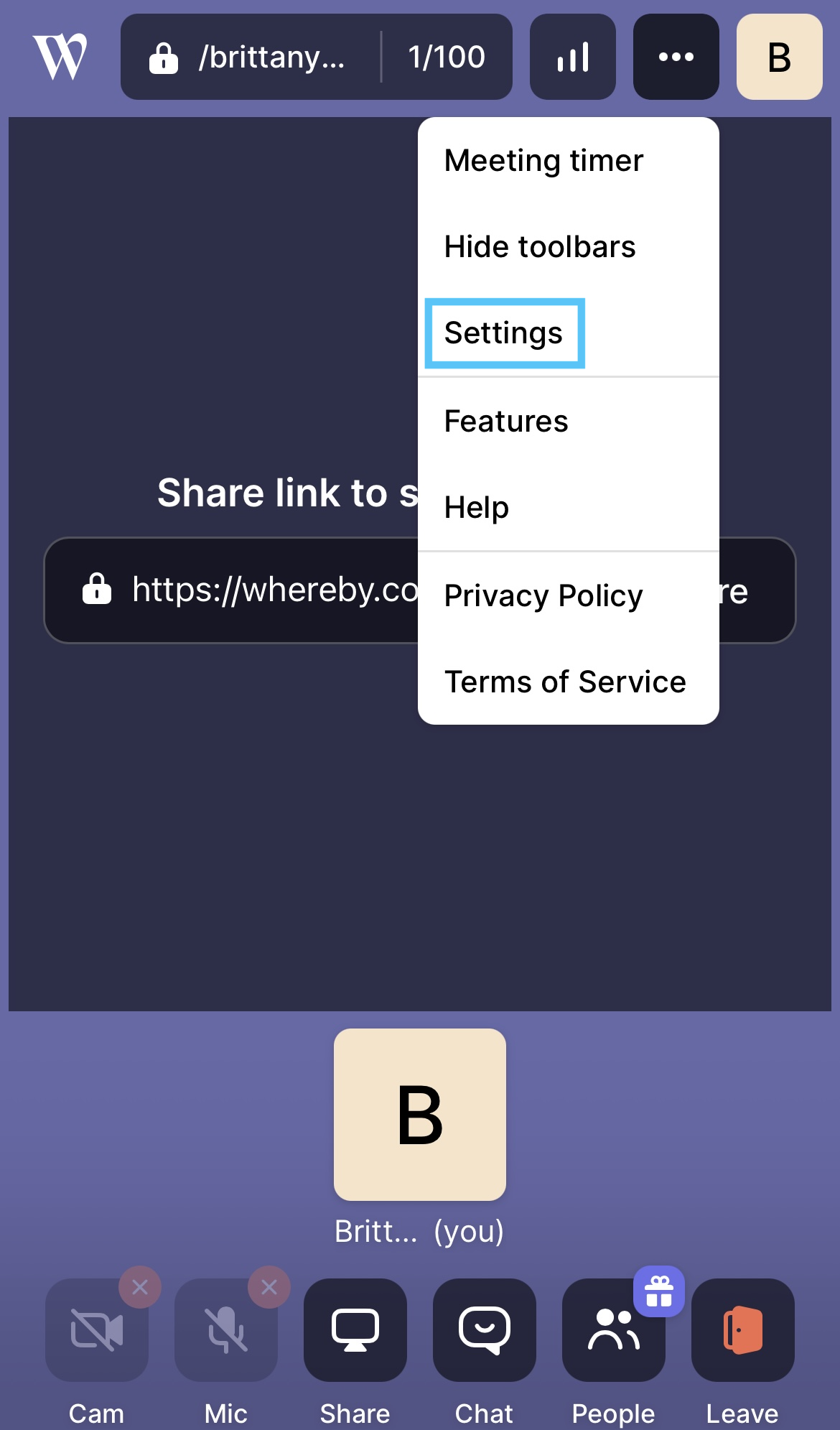 With your Pro subscription, you can customize your Whereby room to feature your team's branding! This is great for keeping your company's brand at the forefront of your meetings, or for making your meeting space match your preferences.